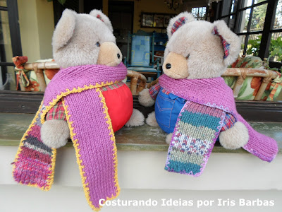 Com os restos de lã, fiz mais dois pequenos cachecóis pras minhas netas Marina e Antônia.